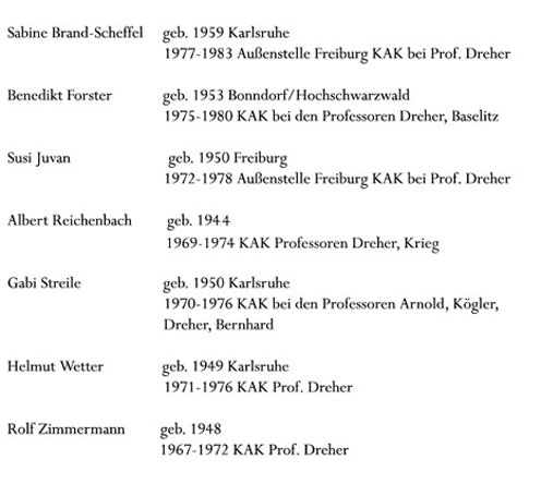 Ehemalige der Malklasse Peter Dreher Freiburg zum Thema Landschaft:Sabine Brand-Scheffel, Benedikt Forster, Susi Juvan, Albert Reichenbach, Gabi Streile, Helmut Wetter, Rolf Zimmermann