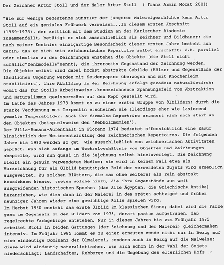Auszug Textbeitrag Franz Armin Morat in Ausstellungskatalog Artur Stoll,