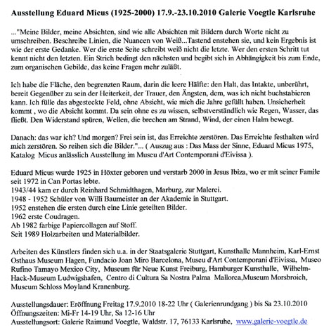 Fotoalbum zu der Ausstellung Eduard Micus Galerie Voegtle 2010: