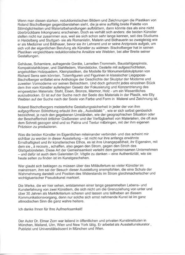 Gemeinschaftsaustellung mit Roland Bischofberger Skulptur
