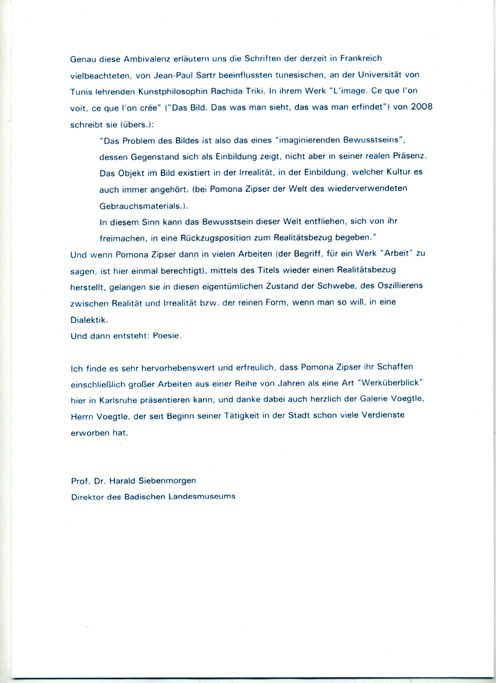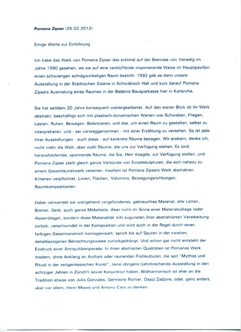 Abb.ff: Eröffnungsrede Ausstellung Pomona Zipser Prof. Dr. Harald Siebenmorgen 25.2.2012 Galerie Voegtle